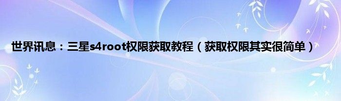 世界讯息:三星s4root权限获取教程(获取权限其实很简单)