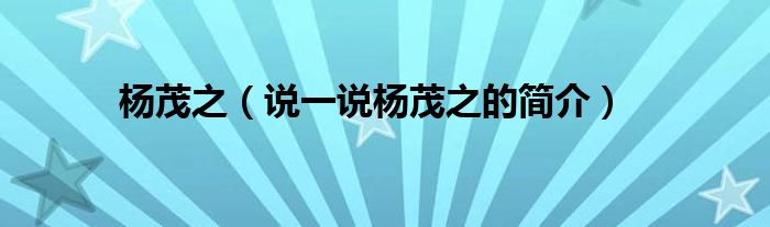 夏弥来为大家解答以下的问题,杨茂之,说一说杨茂之的简介,现在让我们一起来看看吧!
