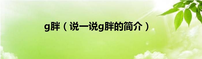 g胖(说一说g胖的简介)