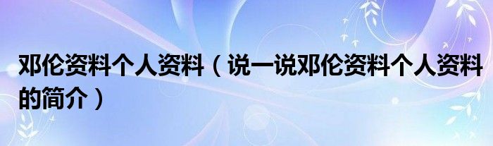 邓伦资料个人资料(说一说邓伦资料个人资料的简介)