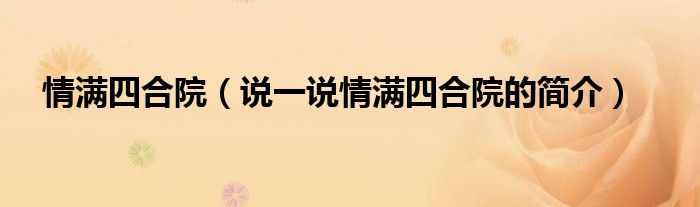 夏弥来为大家解答以下的问题,情满四合院,说一说情满四合院的简介,现在让我们一起来看看吧!