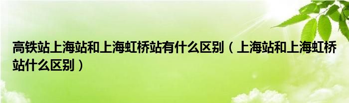 关于高铁站上海站和上海虹桥站有什么区别,上海站和上海虹桥站什么区别这个很多人还不知道,今天菲菲来为大家解答以上的问题,现在让我们一起来看看吧!