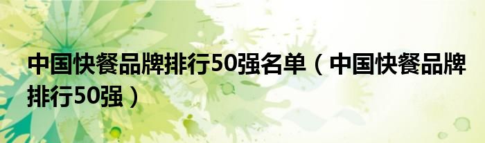 关于中国快餐品牌排行50强名单,中国快餐品牌排行50强这个很多人还不知道,今天菲菲来为大家解答以上的问题,现在让我们一起来看看吧!