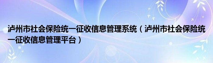 关于泸州市社会保险统一征收信息管理系统,泸州市社会保险统一征收信息管理平台这个很多人还不知道,今天菲菲来为大家解答以上的问题,现在让我们一起来看看吧!