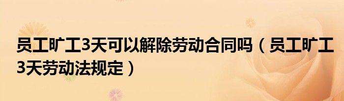 关于员工旷工3天可以解除劳动合同吗,员工旷工3天劳动法规定这个很多人还不知道,今天菲菲来为大家解答以上的问题,现在让我们一起来看看吧!