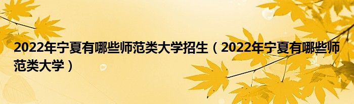 一、2022年宁夏有哪些师范类大学