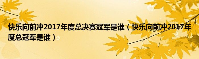 快乐向前冲2017年度总决赛冠军是谁(快乐向前冲2017年度总冠军是谁)