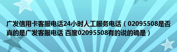 广发信用卡客服电话24小时人工服务电话(02095508是否真的是广发客服电话 百度02095508有的说的确是)