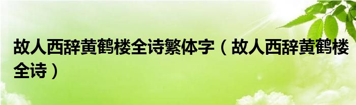 关于故人西辞黄鹤楼全诗繁体字,故人西辞黄鹤楼全诗这个很多人还不知道,今天菲菲来为大家解答以上的问题,现在让我们一起来看看吧!