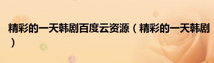 关于精彩的一天韩剧百度云资源,精彩的一天韩剧这个很多人还不知道,今天菲菲来为大家解答以上的问题,现在让我们一起来看看吧!