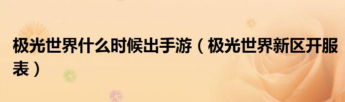关于极光世界什么时候出手游,极光世界新区开服表这个很多人还不知道,今天菲菲来为大家解答以上的问题,现在让我们一起来看看吧!
