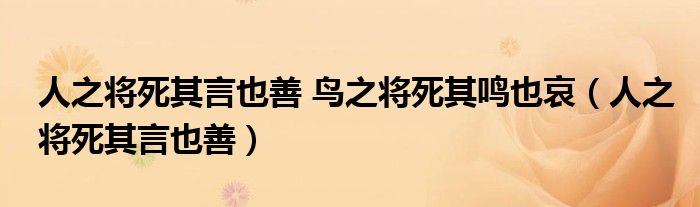 大家好,小联来为大家解答以上的问题。人之将死其言也善 鸟之将死其鸣也哀,人之将死其言也善这个很多人还不知道,现在让我们一起来看看吧!