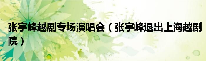 关于张宇峰越剧专场演唱会,张宇峰退出上海越剧院这个很多人还不知道,今天菲菲来为大家解答以上的问题,现在让我们一起来看看吧!