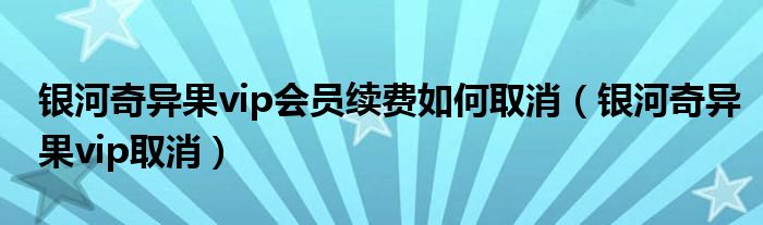 关于银河奇异果vip会员续费如何取消,银河奇异果vip取消这个很多人还不知道,今天菲菲来为大家解答以上的问题,现在让我们一起来看看吧!