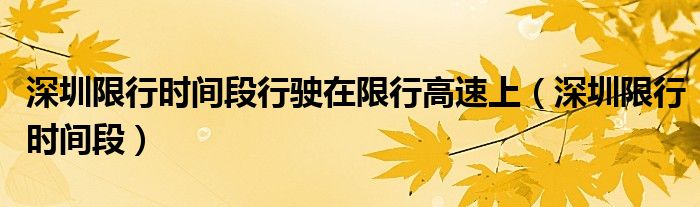 关于深圳限行时间段行驶在限行高速上,深圳限行时间段这个很多人还不知道,今天菲菲来为大家解答以上的问题,现在让我们一起来看看吧!