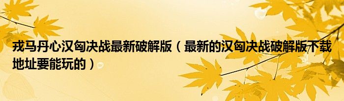 关于戎马丹心汉匈决战最新破解版,最新的汉匈决战破解版下载地址要能玩的这个很多人还不知道,今天菲菲来为大家解答以上的问题,现在让我们一起来看看吧!