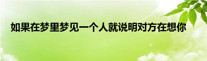 关于如果在梦里梦见一个人就说明对方在想你这个很多人还不知道,今天菲菲来为大家解答以上的问题,现在让我们一起来看看吧!