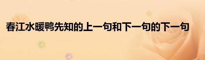 大家好,小联来为大家解答以上的问题。春江水暖鸭先知的上一句和下一句的下一句这个很多人还不知道,现在让我们一起来看看吧!