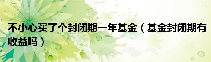 大家好,我是小科,我来为大家解答以上问题。不小心买了个封闭期一年基金,基金封闭期有收益吗很多人还不知道,现在让我们一起来看看吧!