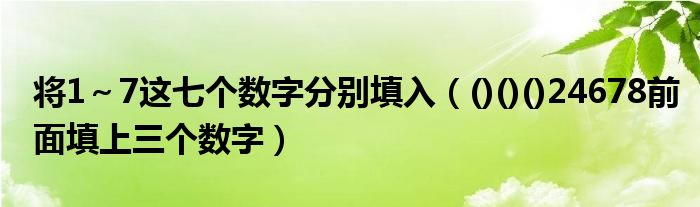 大家好,小联来为大家解答以上的问题。将1~7这七个数字分别填入,()()()24678前面填上三个数字这个很多人还不知道,现在让我们一起来看看吧!