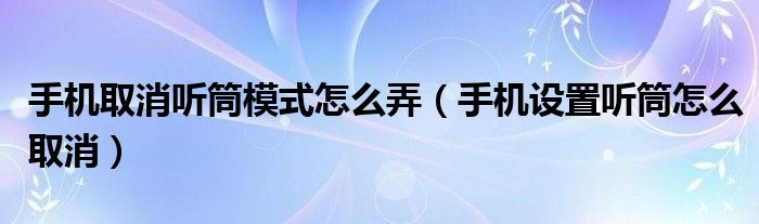 手机取消听筒模式怎么弄(手机设置听筒怎么取消)