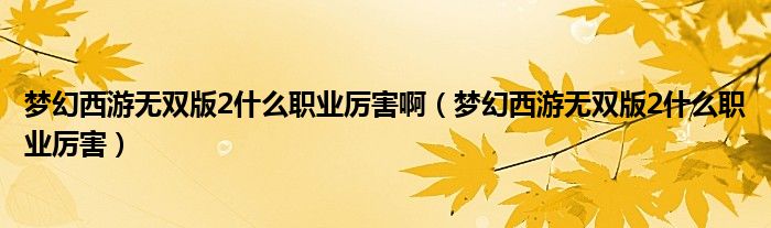 梦幻西游无双版2什么职业厉害啊(梦幻西游无双版2什么职业厉害)