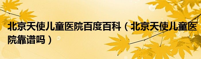 北京天使儿童医院百度百科(北京天使儿童医院靠谱吗)
