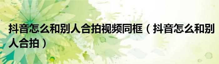 大家好,小晋来为大家解答以下问题,关于抖音怎么和别人合拍视频同框,抖音怎么和别人合拍很多人还不知道,今天让我们一起来看看吧!