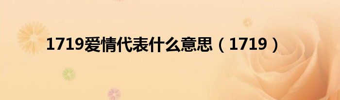大家好,小联来为大家解答以上的问题。1719爱情代表什么意思,1719这个很多人还不知道,现在让我们一起来看看吧!