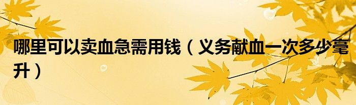 哪里可以卖血急需用钱(义务献血一次多少毫升)