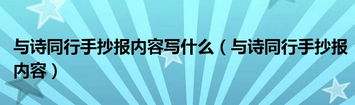 大家好,我是小科,我来为大家解答以上问题。与诗同行手抄报内容写什么,与诗同行手抄报内容很多人还不知道,现在让我们一起来看看吧!