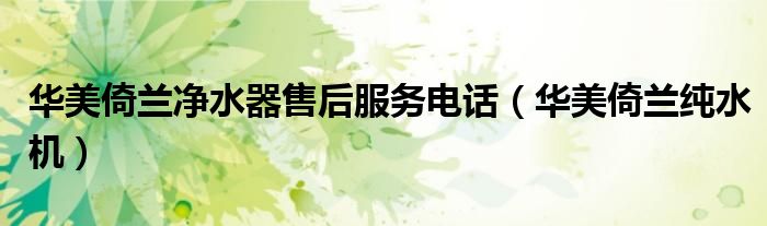 今天小饼为大家解答以下问题,关于华美倚兰净水器售后服务电话,华美倚兰纯水机很多人还不知道,现在让我们一起来看看吧!