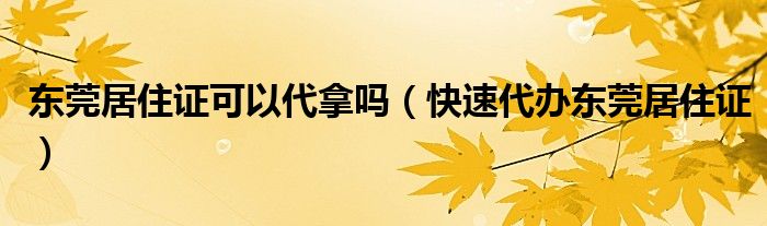 东莞居住证可以代拿吗(快速代办东莞居住证)