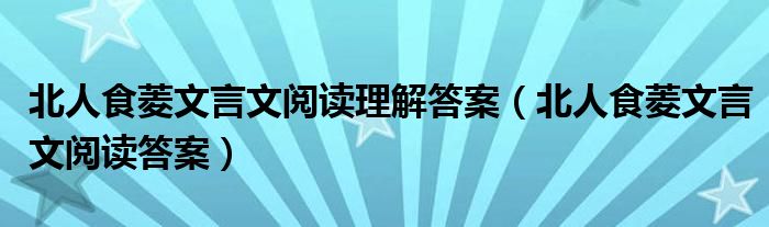 大家好,小联来为大家解答以上的问题。北人食菱文言文阅读理解答案,北人食菱文言文阅读答案这个很多人还不知道,现在让我们一起来看看吧!