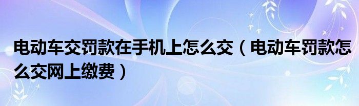 电动车交罚款在手机上怎么交(电动车罚款怎么交网上缴费)