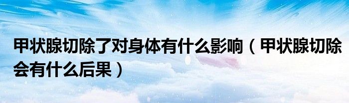 大家好,乐天来为大家解答以下的问题,甲状腺切除了对身体有什么影响,甲状腺切除会有什么后果很多人还不知道,现在让我们一起来看看吧!