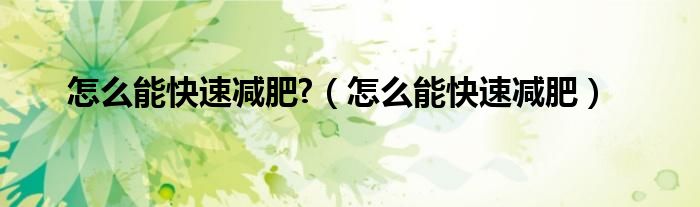 怎么能快速减肥?(怎么能快速减肥)