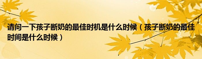 请问一下孩子断奶的最佳时机是什么时候(孩子断奶的最佳时间是什么时候)