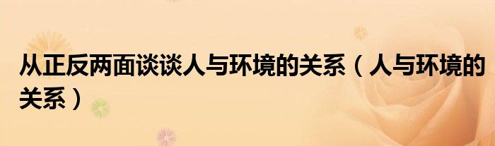 大家好,小晋来为大家解答以下问题,关于从正反两面谈谈人与环境的关系,人与环境的关系很多人还不知道,今天让我们一起来看看吧!