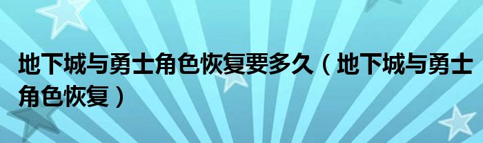 大家好,小晋来为大家解答以下问题,关于地下城与勇士角色恢复要多久,地下城与勇士角色恢复很多人还不知道,今天让我们一起来看看吧!