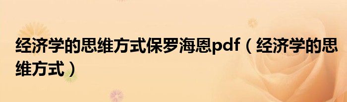 经济学的思维方式保罗海恩pdf(经济学的思维方式)