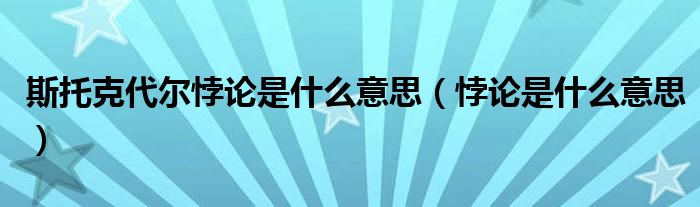 大家好,小晋来为大家解答以下问题,关于斯托克代尔悖论是什么意思,悖论是什么意思很多人还不知道,今天让我们一起来看看吧!