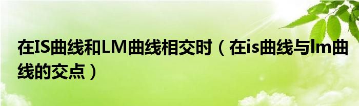 关于在IS曲线和LM曲线相交时,在is曲线与lm曲线的交点这个很多人还不知道,今天菲菲来为大家解答以上的问题,现在让我们一起来看看吧!