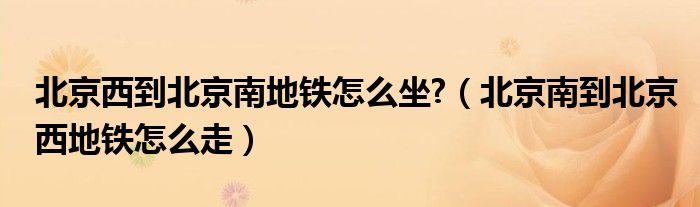 关于北京西到北京南地铁怎么坐?,北京南到北京西地铁怎么走这个很多人还不知道,今天菲菲来为大家解答以上的问题,现在让我们一起来看看吧!