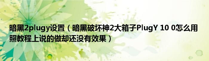 关于暗黑2plugy设置,暗黑破坏神2大箱子PlugY 10 0怎么用 照教程上说的做却还没有效果这个很多人还不知道,今天菲菲来为大家解答以上的问题,现在让我们一起来看看吧!