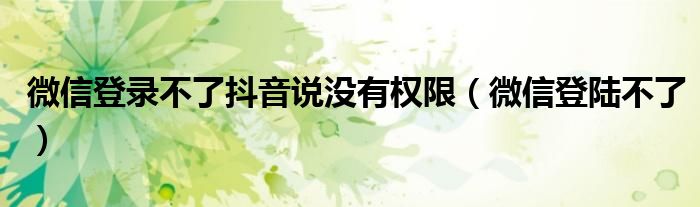 大家好,来宝来为大家解答以下问题,微信登录不了抖音说没有权限,微信登陆不了很多人还不知道,今天让我们一起来看看吧!