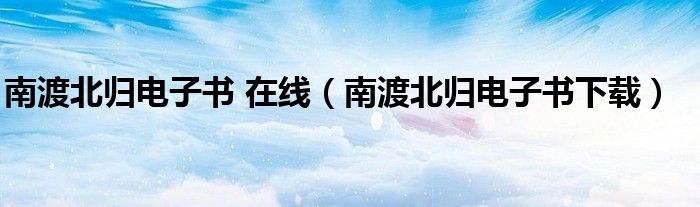 关于南渡北归电子书 在线,南渡北归电子书下载这个很多人还不知道,今天菲菲来为大家解答以上的问题,现在让我们一起来看看吧!