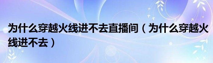 关于为什么穿越火线进不去直播间,为什么穿越火线进不去这个很多人还不知道,今天菲菲来为大家解答以上的问题,现在让我们一起来看看吧!