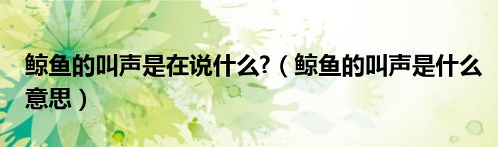 关于鲸鱼的叫声是在说什么?,鲸鱼的叫声是什么意思这个很多人还不知道,今天菲菲来为大家解答以上的问题,现在让我们一起来看看吧!