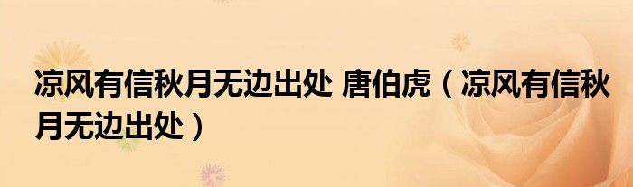 关于凉风有信秋月无边出处 唐伯虎,凉风有信秋月无边出处这个很多人还不知道,今天菲菲来为大家解答以上的问题,现在让我们一起来看看吧!